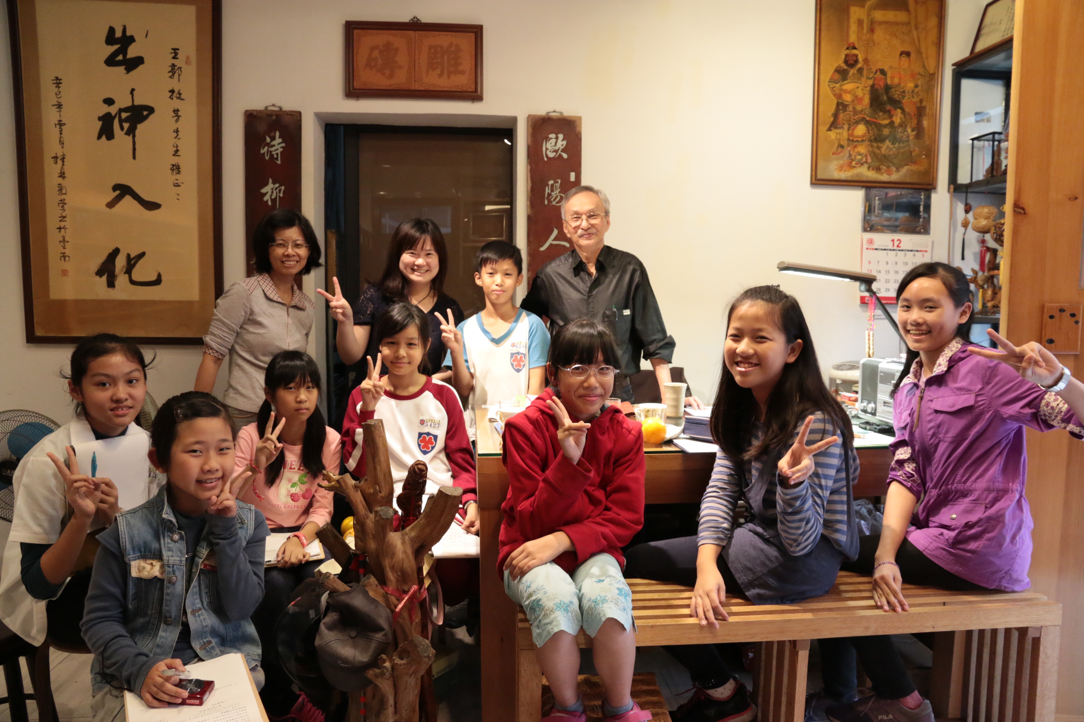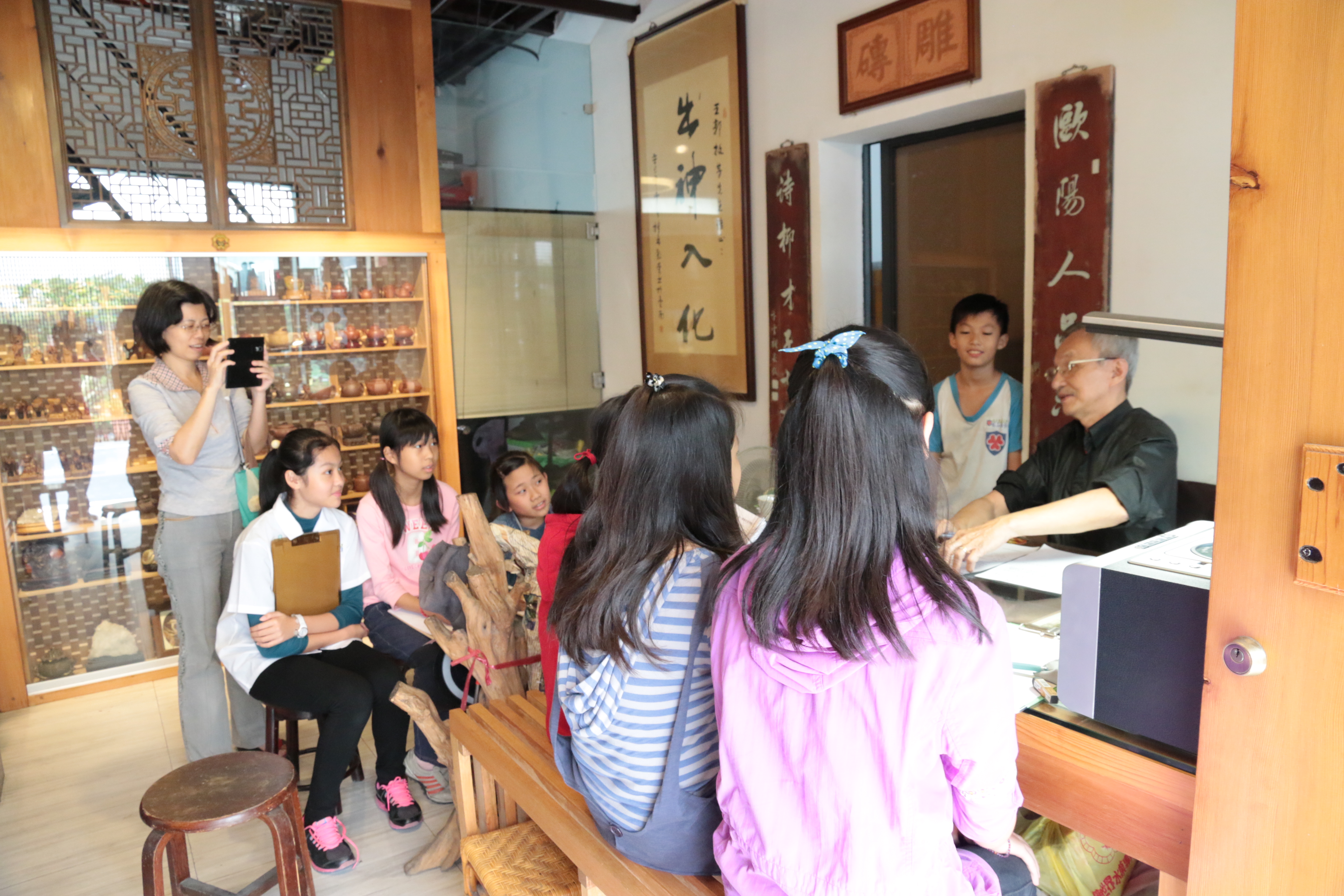 我們事先準備了好多的問題打算要請教王老師,我們發現王老師是一位很有藝術家氣息的老者,年紀雖然大,但思慮清析而且十分健談,對於我們的提問,無一不答,在這次的訪問中,我們整個團隊的學生和老師都受益斐淺,除了雕刻方面的技巧,我們也更了解王老師的處世之道,尤其是他在藝術創作上的堅持,更是令人敬佩…由於時間的關係,我們這次的拜訪就到下午四點左右結束,我們跟王老師約定好下一次拜訪的時間,王老師欣然答應,期待下一次的專訪。