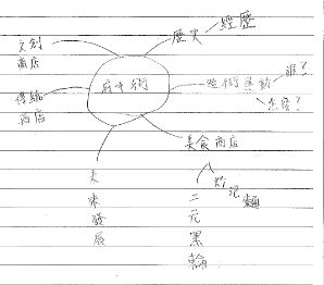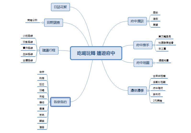 1.以【府中街】為主題,畫出研究結構的心智圖,週三交紙本給老師彙整。