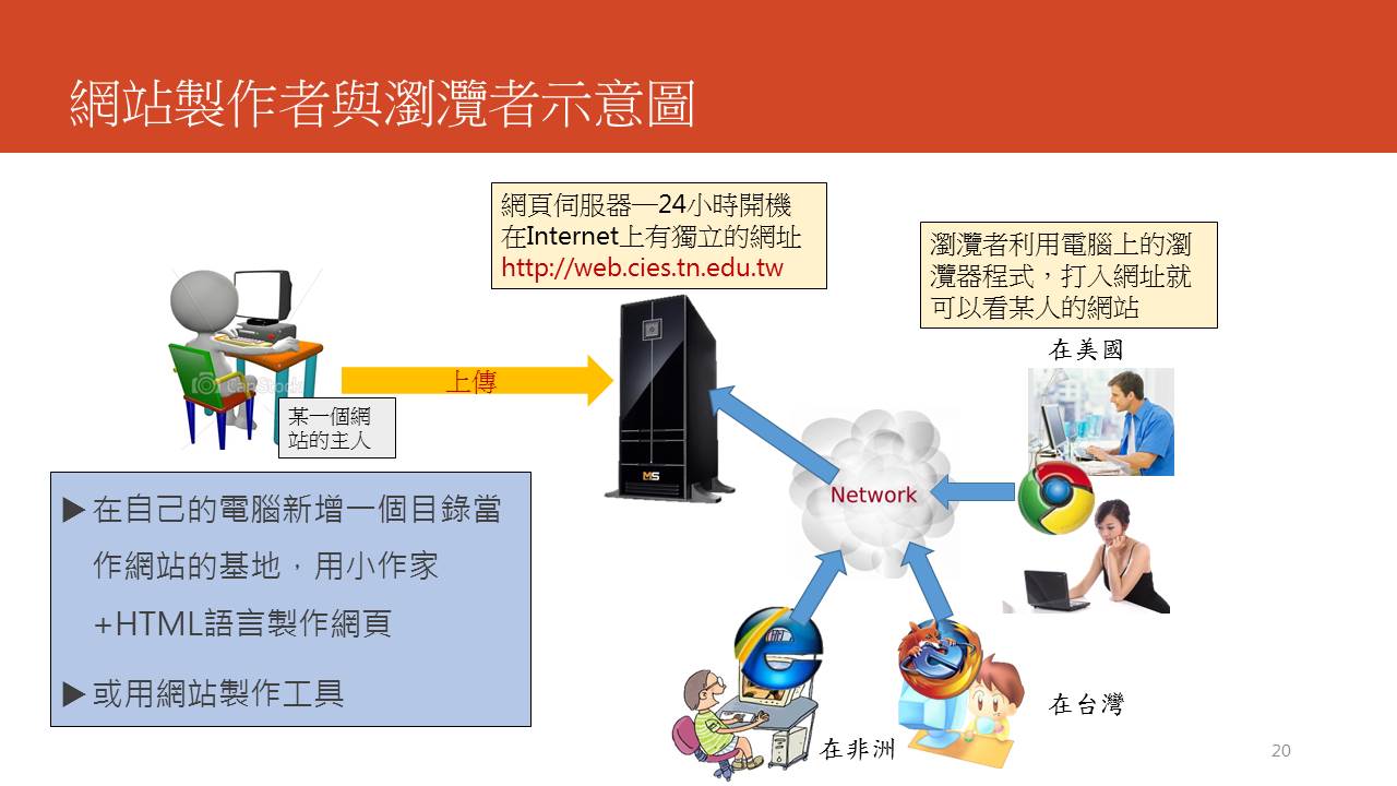為了讓大家知其所以然,鄭老師先跟大家簡單地介紹網際網路的發展歷史,也讓大家知道現在大家天天在逛的網頁(超文件)是1990年左右才發展出來,短短的二十幾年竟進步成今日的樣子。