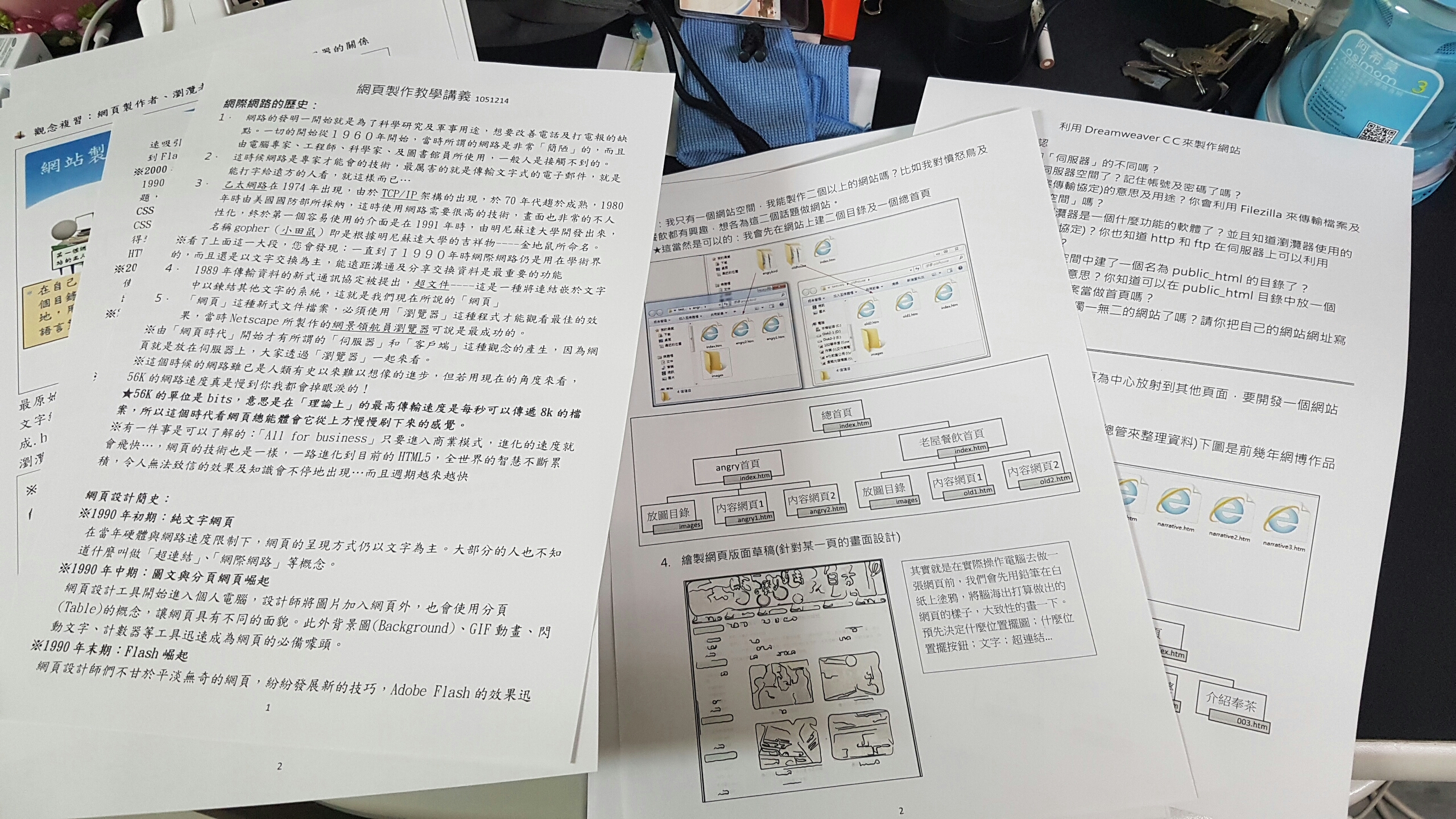 今天下午鄭老師特別準備了網頁製作課程,讓下午有空留下來的組員們學習,由於這個部份比較有難度,而且有些同學星期三下午有其他的社團活動,所以只請有興趣學網頁技巧的同學來上課,老師還準備了教材印給大家。