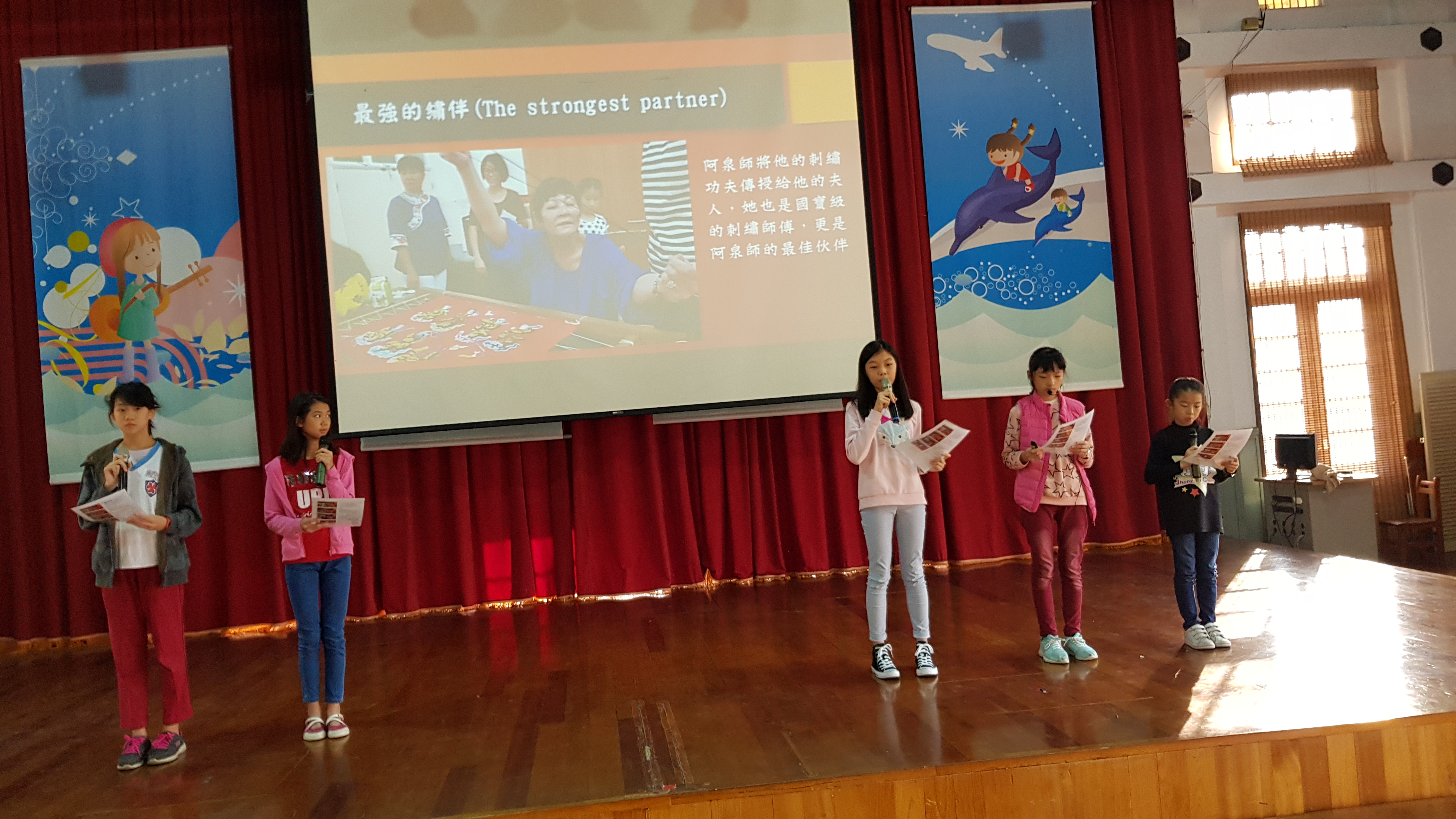 店裡,一如往常的擁擠,除了林玉泉老師之外,其他的刺繡師傅也都在,他們正在努力地趕工主人家預訂的繡品,忙歸忙,他們很歡迎小朋友及老師們的到來,手上的活不曾停下,嘴上也能跟大家聊天…