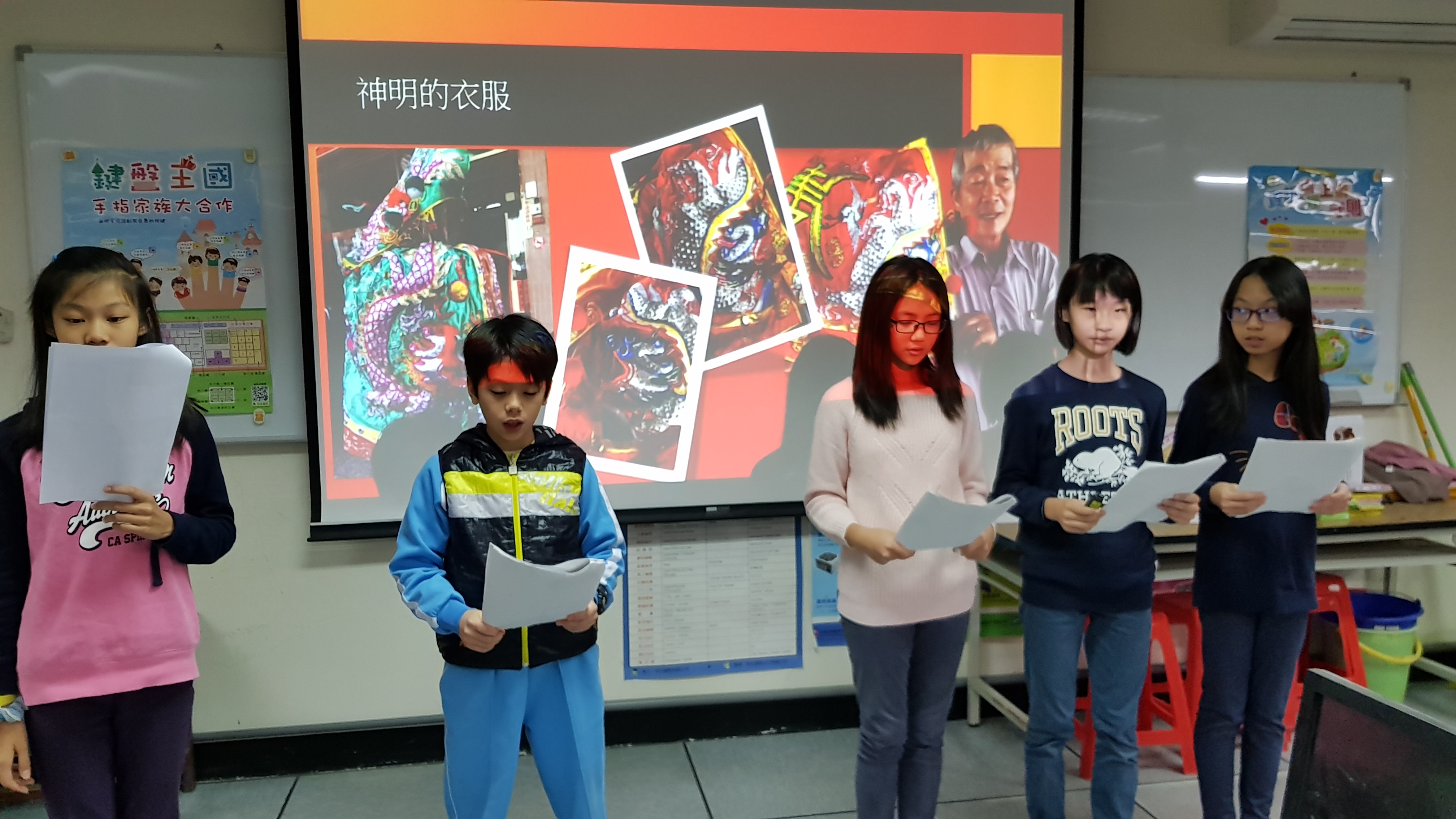 接下來的時間都是用來排練武德殿簡報的練習,今天我們都比較熟悉順序及臺詞的內容,走位也比上一次都要ok了!老師聽了之後,針對幾位小朋友的音量及講話速度還有音調高低做了一些建議,然後再練…,目前我們都還是看著稿子練習。