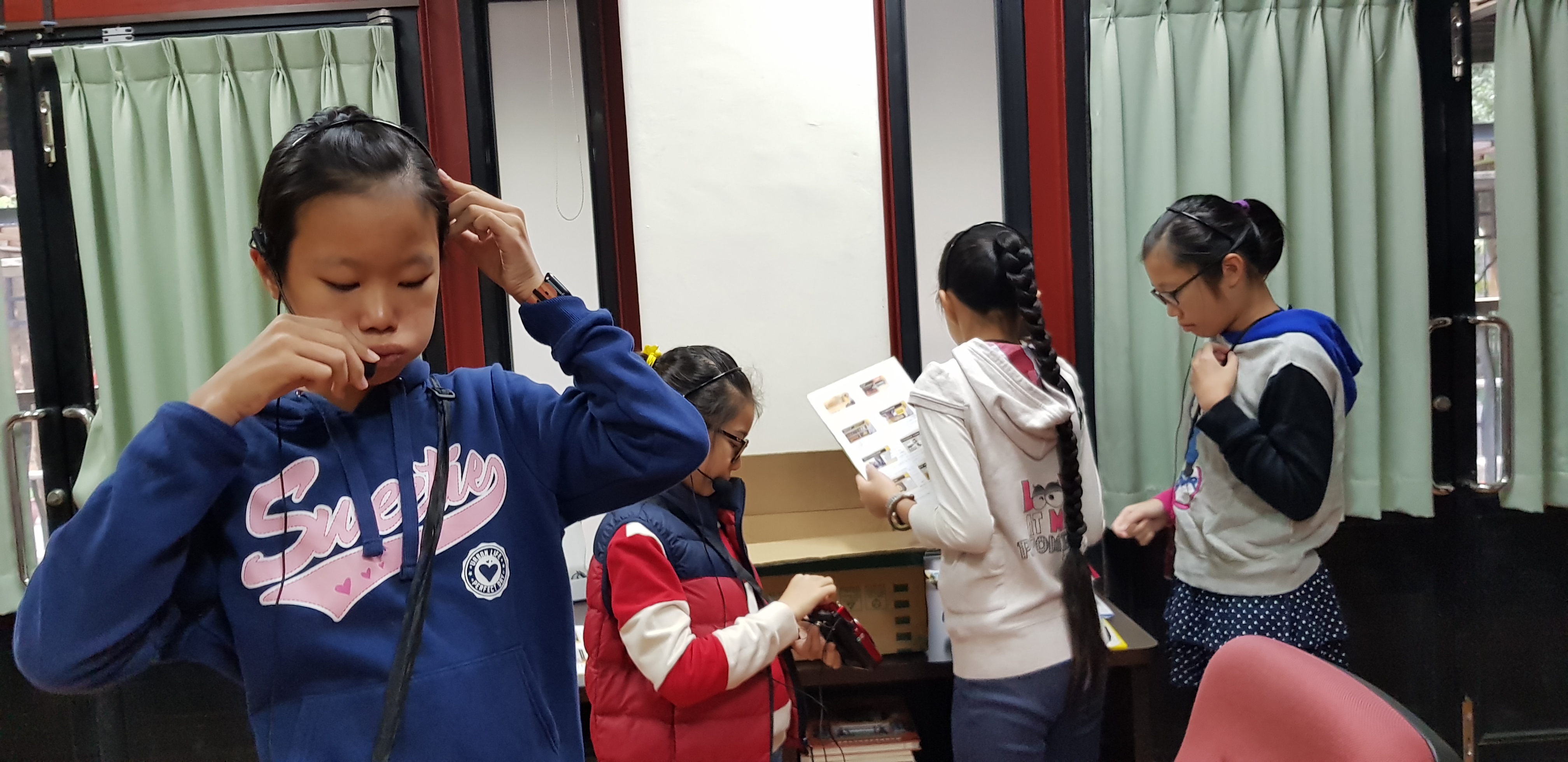老師要求我們每個人都要把自己的台詞背熟,簡報時才不會停在那兒!所以我們利用假日回家得好好地背自己要說的話,還要找時間和伙伴們練習搭配,五年級組的四人剛好同班,比較容易找到一起的時間,六年級組的成員分散在二個班級,好不容易才能練習。