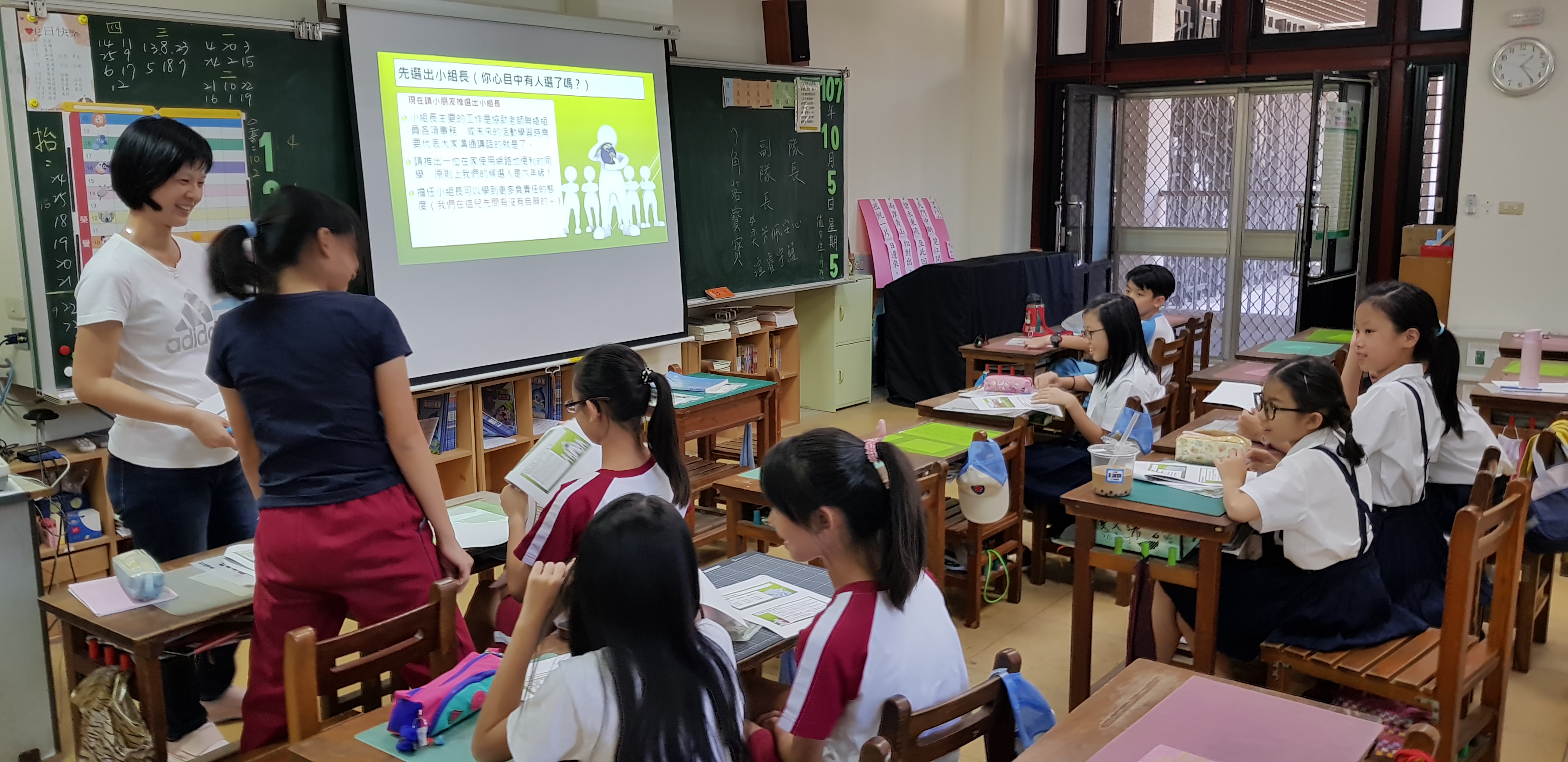 至於選小組長的部份,這次很棒唷!奕叡和芳彣都有意願,所以就大家舉手投票,結果是由芳彣擔任,她請五年級的渲容來擔任副組長。