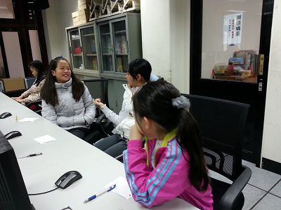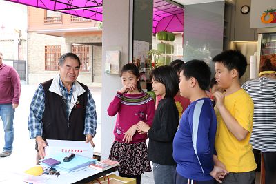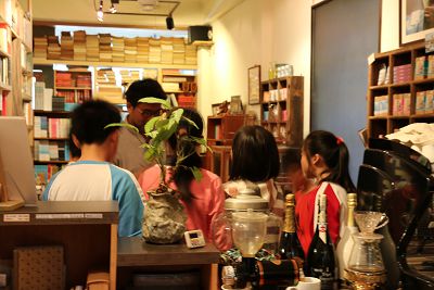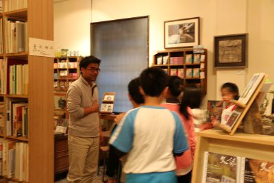 今天中午草祭二手書店的老闆蔡先生剛好在店裡,五年級大軍就組隊出發去跟老板約參訪時間,今天的主講預定是玟琳和香竹,其他人是壯膽用的,行前老師先為大家練習及提醒一些事項,包括注意應對的禮貌、要能說出來意要求、跟老闆商量等等…小朋友們臨場的表現算是不錯的,應該是經驗會慢慢累積的關係,最後海博還記得向老闆要聯絡方式及菜單,不過老闆說,他們店裡現在改為不提供輕食,只賣飲料,所以我們去參訪那天要先吃飽了再去!