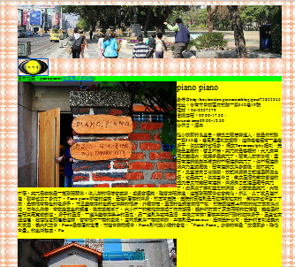 今天的課程主要是學習運用PhotoImpact製作出網頁所要的圖及網頁的排版(圖文之間位置的設定),老師教大家使用表格來做網頁的格局編排,我們按照我們的專題「踅而食習之~不亦樂乎」及「走訪老房子裡的特色餐飲」來做練習,我們還學會了使用Aleo Flash Intro Banner Maker來做動畫的特效再放到網頁中,在課程的最後,老師讓我們相互觀摩一下彼此的網頁目前的樣子。
