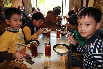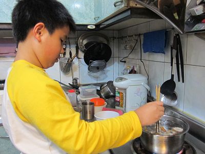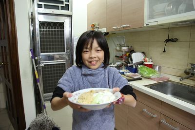 接下來,我們所有的組員要做的是:將今天吃炒泡麵的感想寫出來,每個人都要依自己的觀察及感覺詳細地描述,這項美味的餐點的特色及口感,有幾位小朋友回家後有做實驗的,還要再加上比較文。