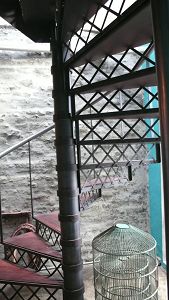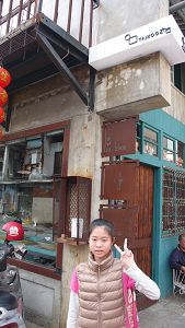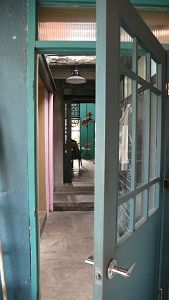 櫃檯旁邊有一個藍色的木製小門,好像倉庫的門啊........打開一看 原來是通往後面啊。真像個祕密通道,原來以為只有前面的空間呢! |