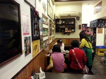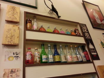 店裡的牆面上擺了很多的日本酒瓶,最特別的是還掛了一些木牌,仔細一看都是統一棒球隊的球星的簽名牌 | 最後我在店門口拍了張照片,本來想邀老板娘來照張合照,但店裡的客人越來越多,她忙進忙出的,所以我就不好意思叫她了! |