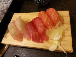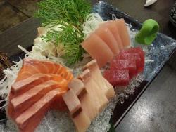 老爸很喜歡吃生魚片,所以極力主張要去這家店試試看,我們挑了一個星期六的晚上想來一飽口福,想不到一來到店門口,發現客人滿滿滿,還有一組客人在外面等,只好去吃別家,我們沒吃到不甘心,於是在隔幾天利用星期一的傍晚學校一放學我做好功課,在六點左右我們就去搶位子啦!,果然第一個搶到位置。