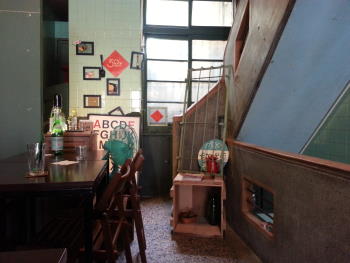 走進卡加米亞咖啡店裡發現一樓的空間很小,主要的座位在二樓,所以我們就上了二樓,這幢建築物很明顯的是老房子,保留了以前房子的結構,最明顯的是樓梯又是那種石頭磨石子的,像莉莉水果店和湯婆婆及廣富號HomeMade也都是這種窄窄的樓梯,問了店家得知房子有一甲子了。 | |