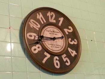 二樓的牆上掛著一個蠻特別的時鐘,是假的,不會走的 | 面對馬路的那側,店家在窗台上會放許多小盆栽,讓我感覺一股綠意 |