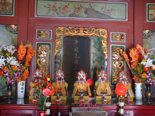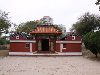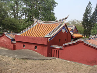五妃廟的建築最大特色在於墓塚與廟宇緊密相連,墓碑就直接嵌在前方祠廟的牆面上,刻著「寧靖王從死五妃墓」的字樣,是典型「墓廟合一」的陰廟。而它正殿屋頂下的楹架(平行於面寬的圓木)數目有八根,與一般廟宇採奇數楹架不同,這也是匠師建廟時,遵循「陽奇陰偶」的民間禁忌所致。另一個結構上的特點與陰廟無關,但也相當少見,即以一單殿式廟宇,卻附有拜亭,使門兩旁的牆微微外斜,形成「八字牆」,與同型式廟宇廟門開在正殿有很大的區別。此外,與一般廟門刻畫上神荼、鬱壘當門神不同,五妃廟的廟門則是畫上宮女及太監。