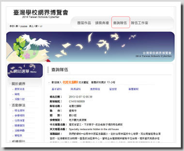 今天中午我們在301教室進行小組討論,我們的報名資料已經通過,大家有空到大會網站上使用「查詢隊伍」的功能就可以看到我們的隊名→老屋灶腳隊,老師希望每個組員都知道寫進度日誌的方法(雖然主要由二位六年級來填寫)
